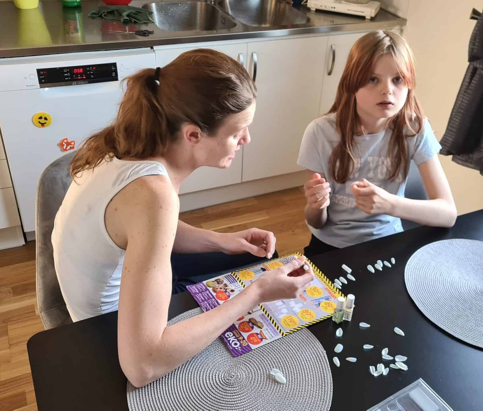 Tjejerna fixar naglarna inför resan.