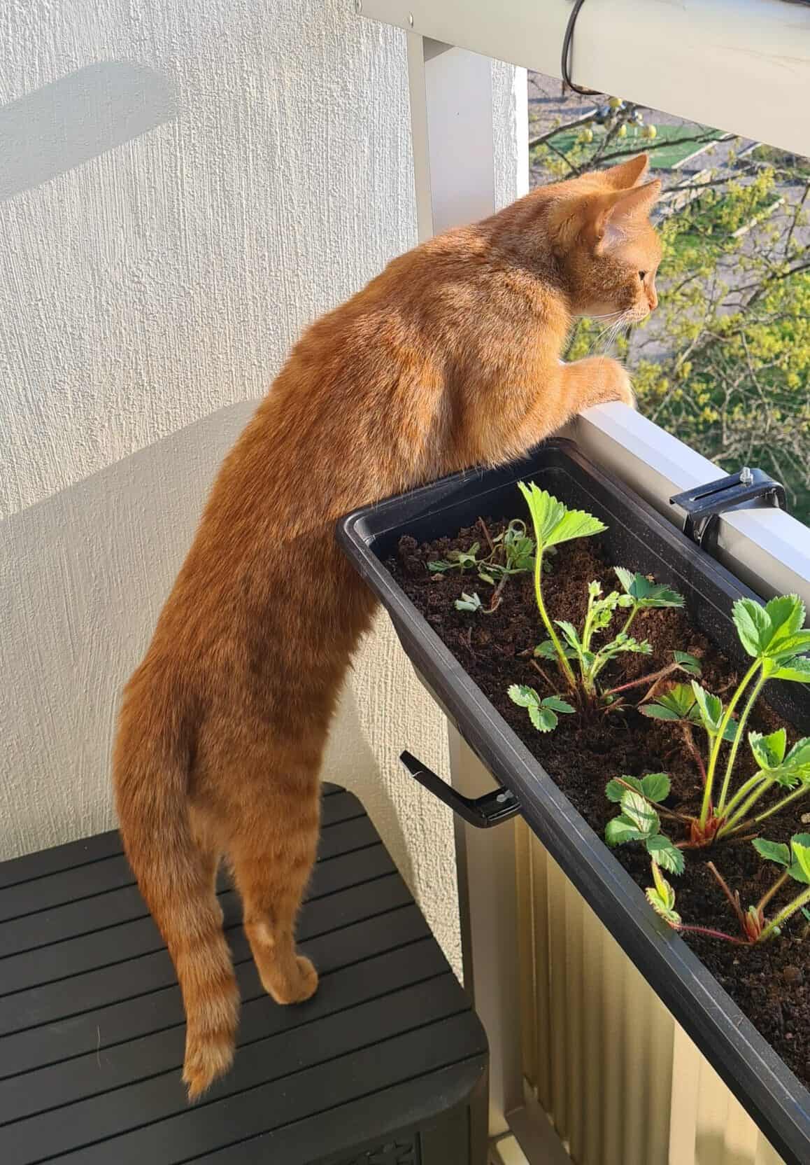 Nu börjar jordgubbarna på balkongen blomma.