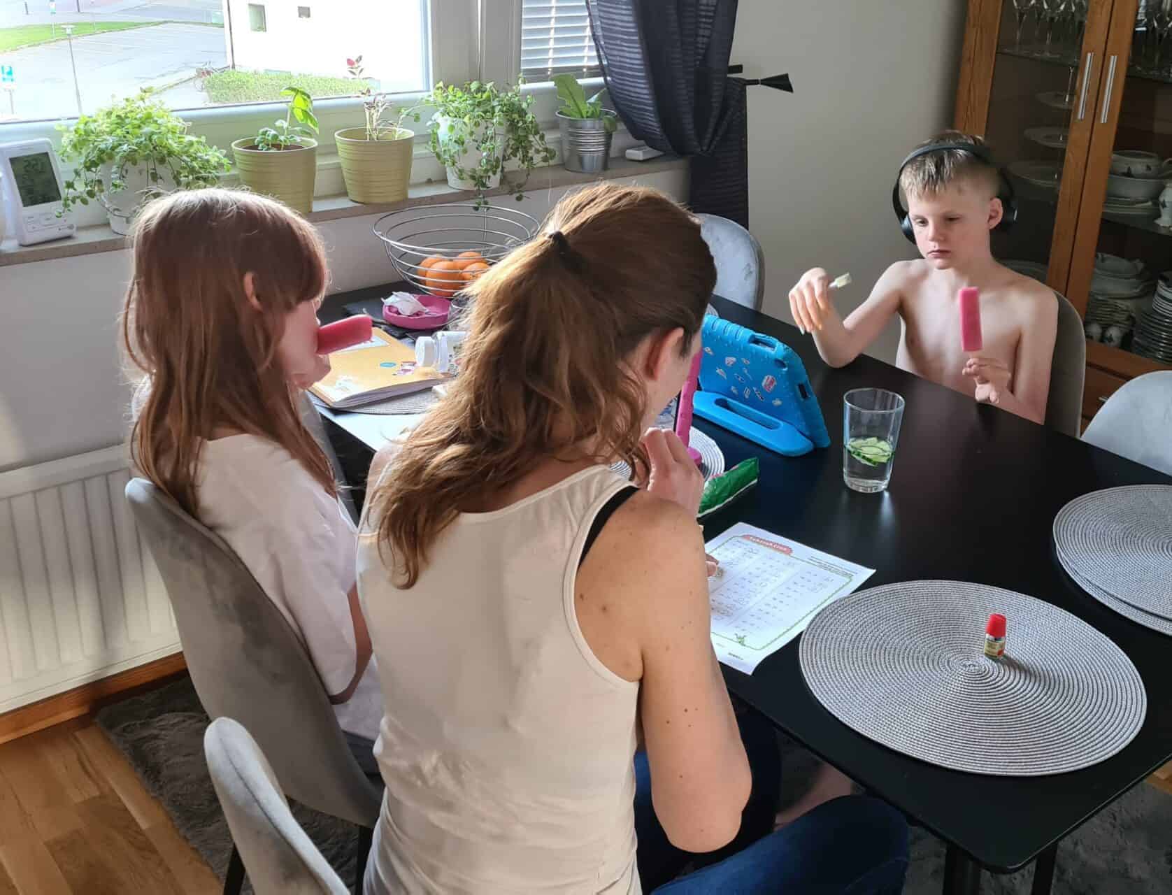 Då blir det mellis och läxläsning, lika bra att göra klart allt innan vi åker imorgon.