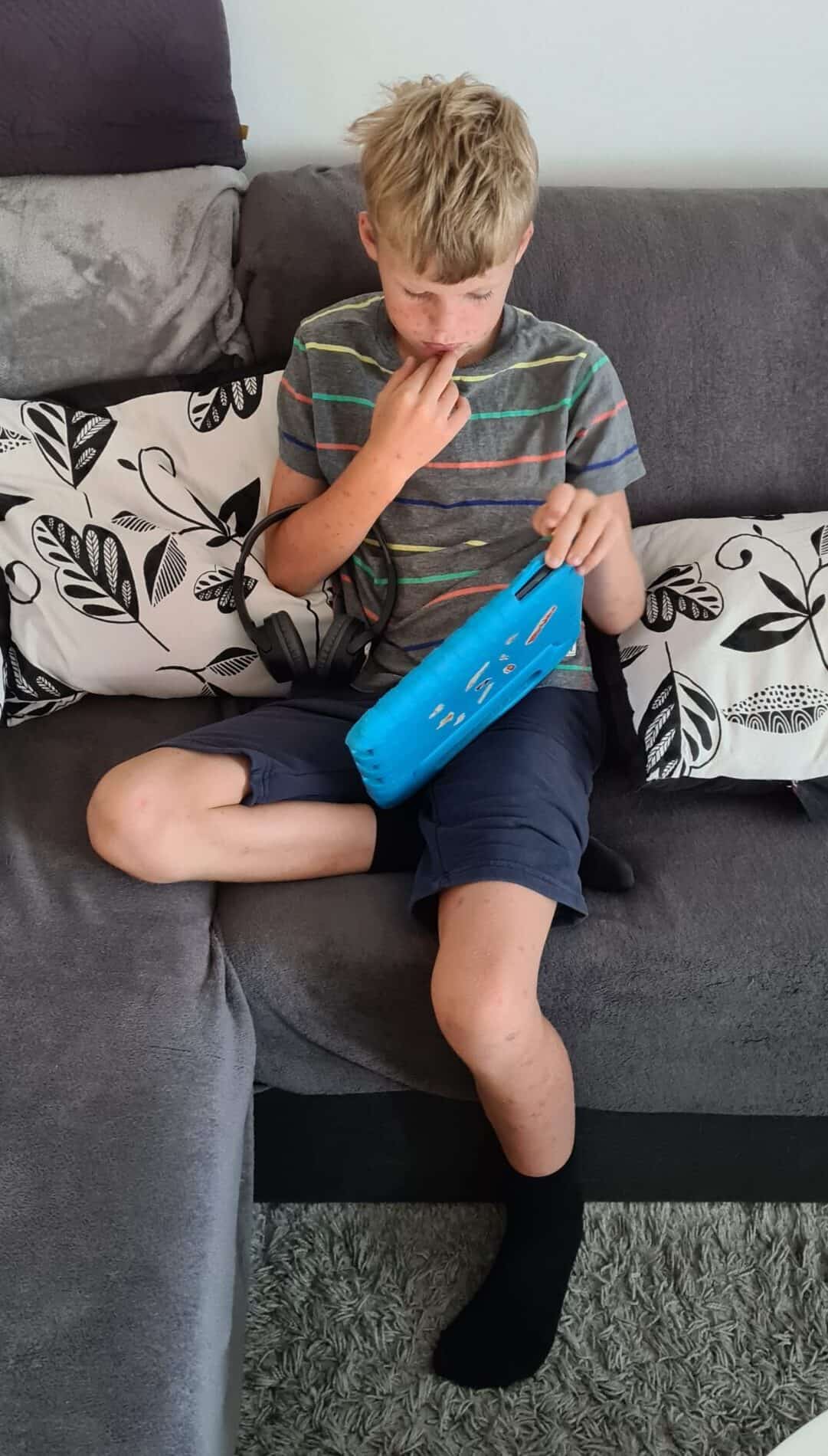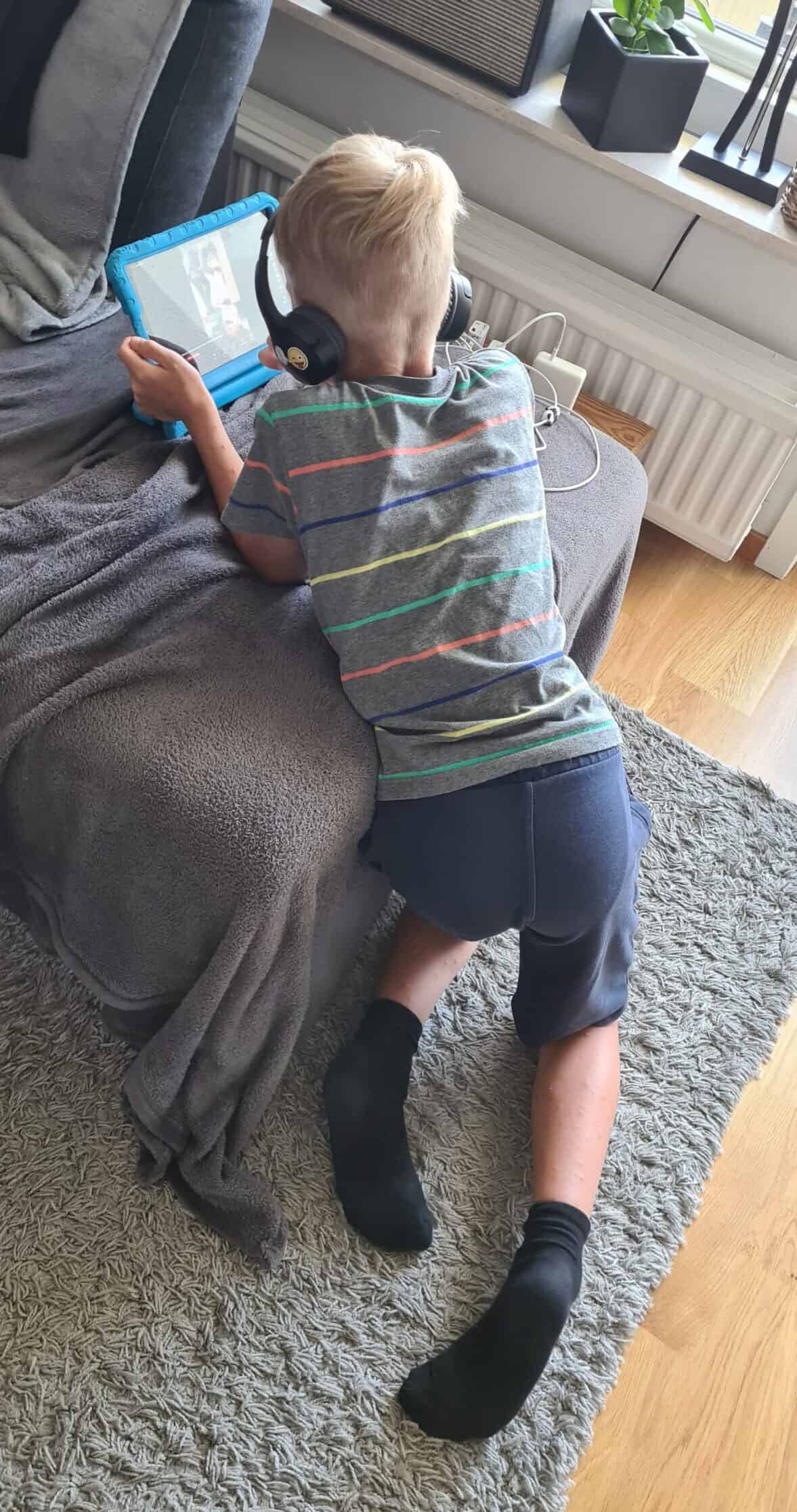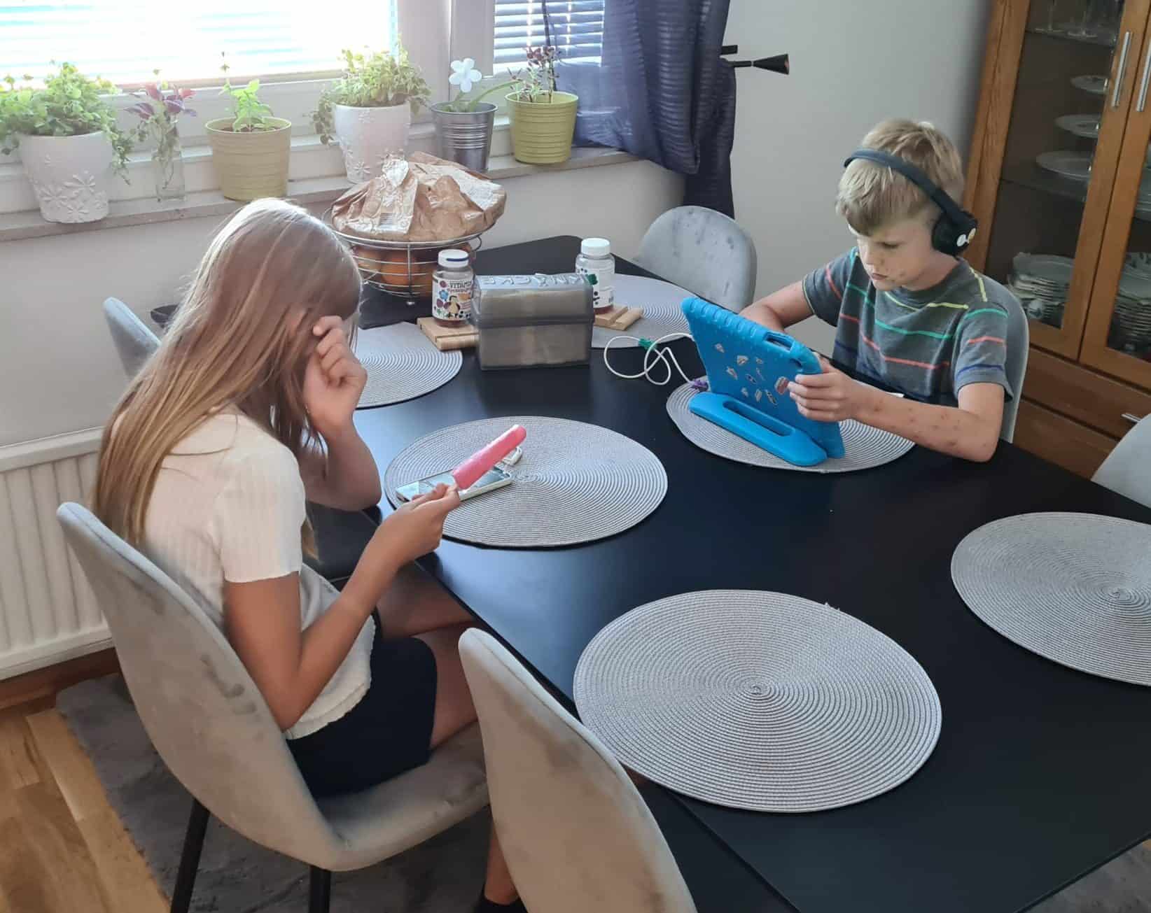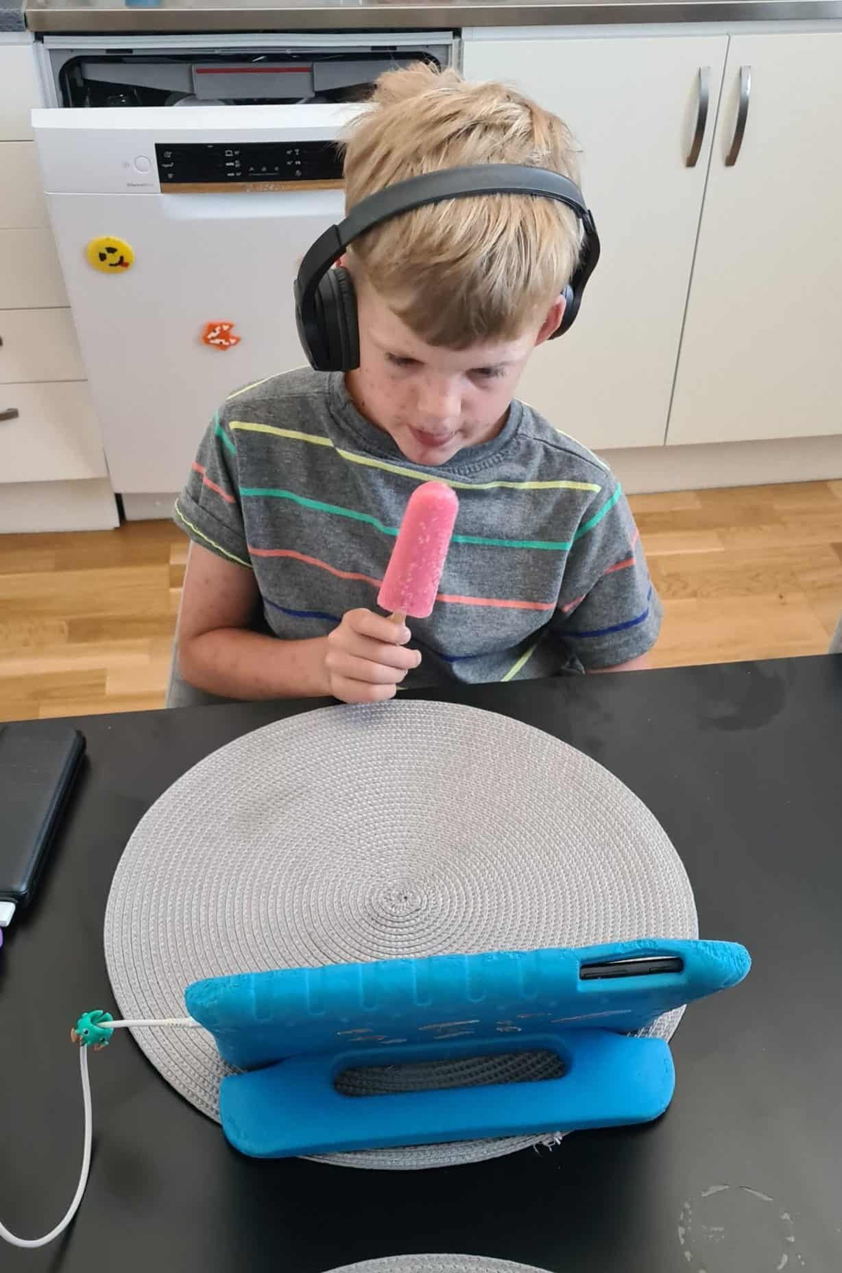 Adina är ute och leker så Albin får äta glass själv.
