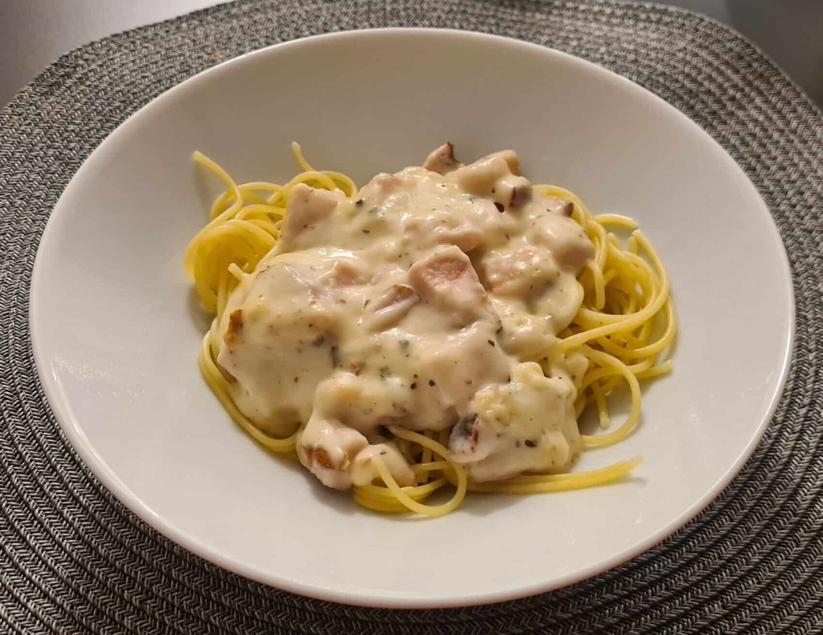 Min tur, idag blev det pasta med ost och kasslersås.
