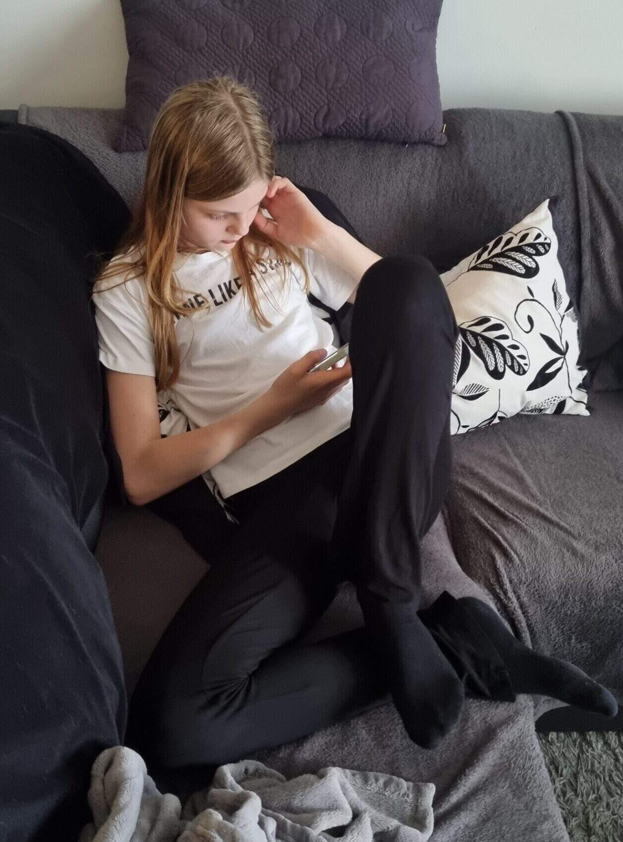 Adina la sig på soffan.