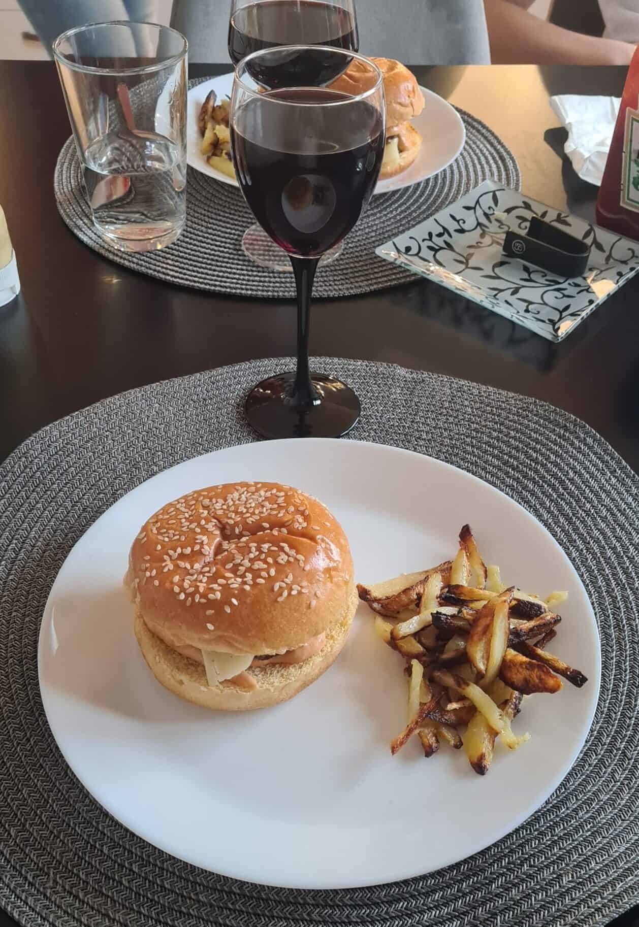 Hemgjorda burgare till middag, pommen blev visst lite brända.