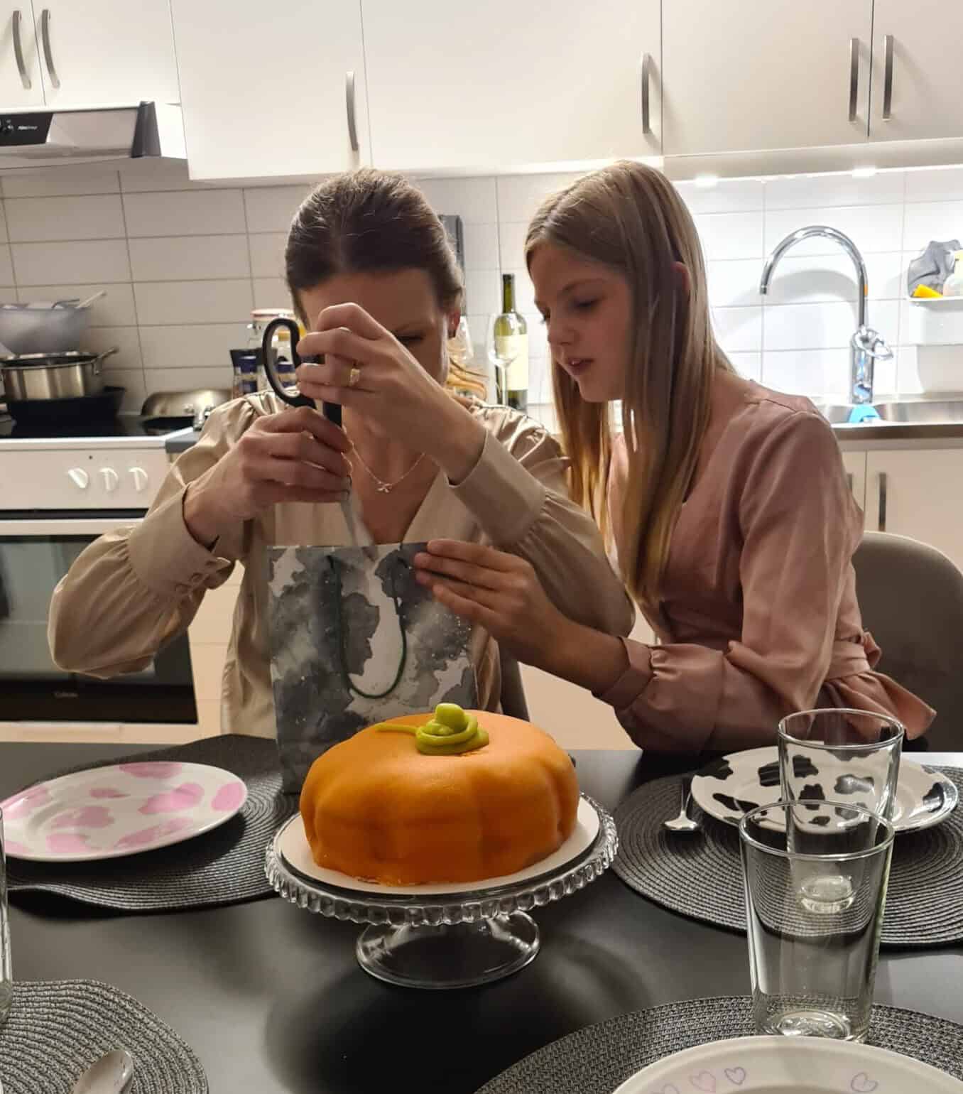 Albin hjälper till med maten.