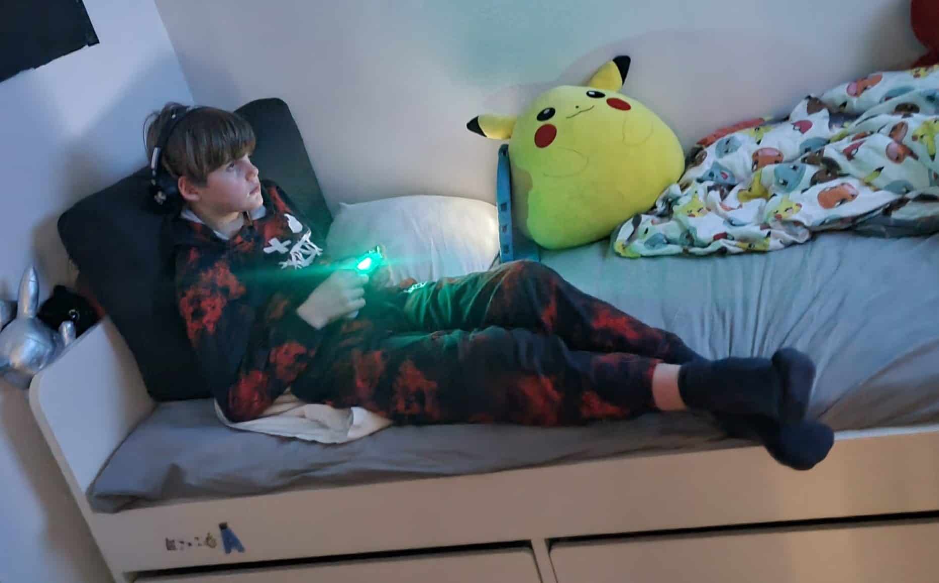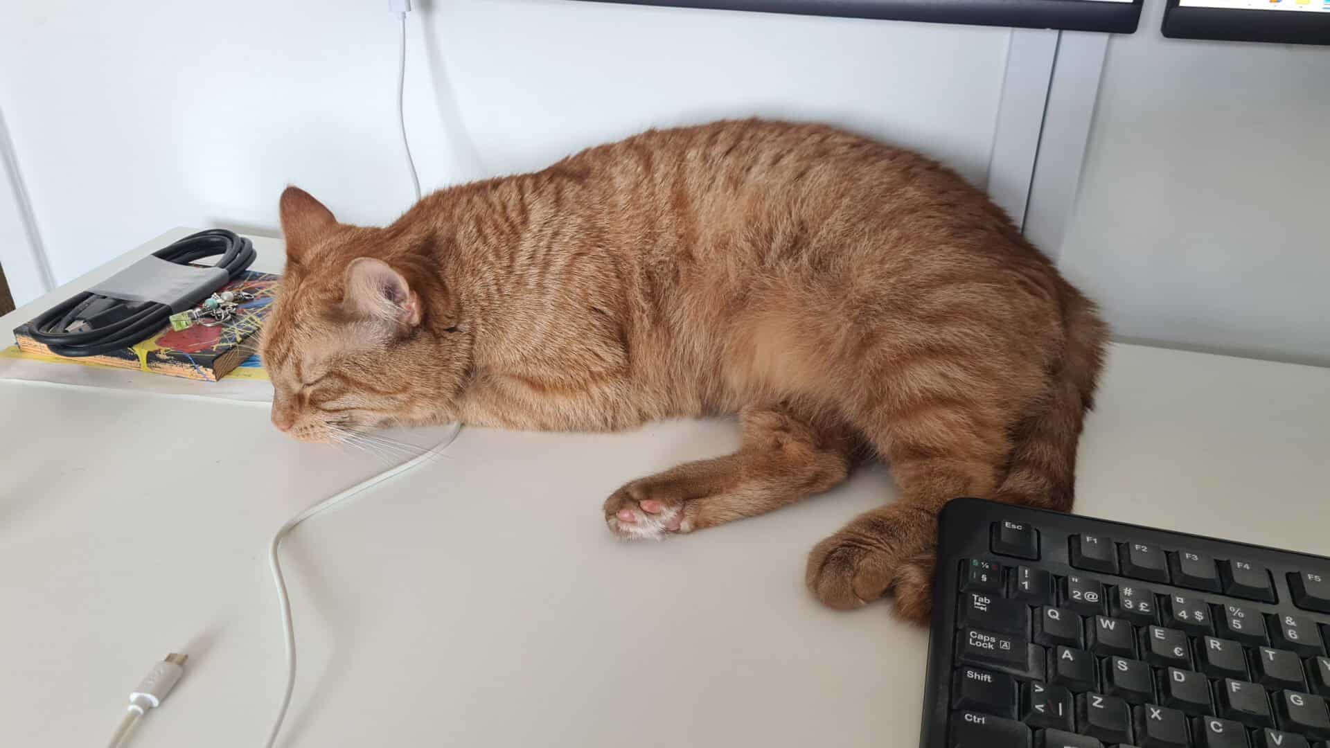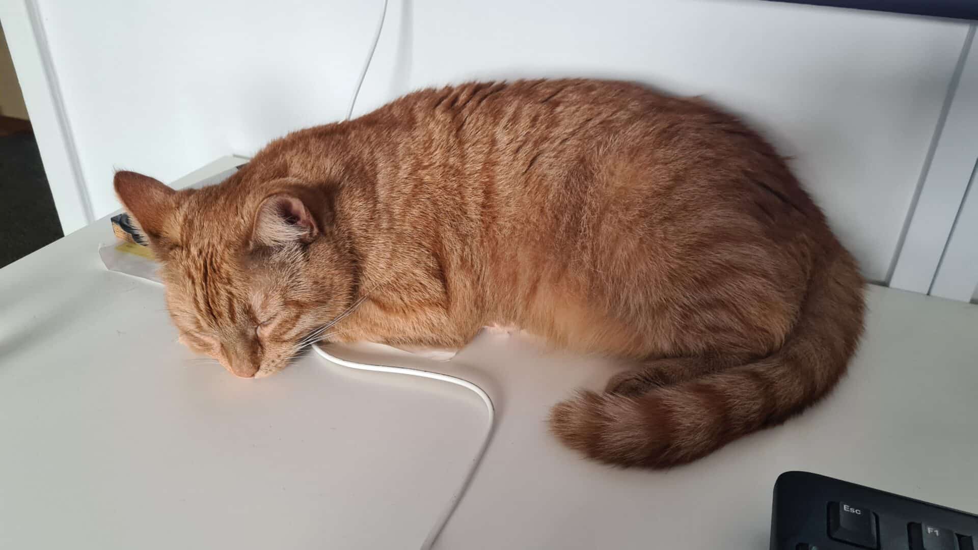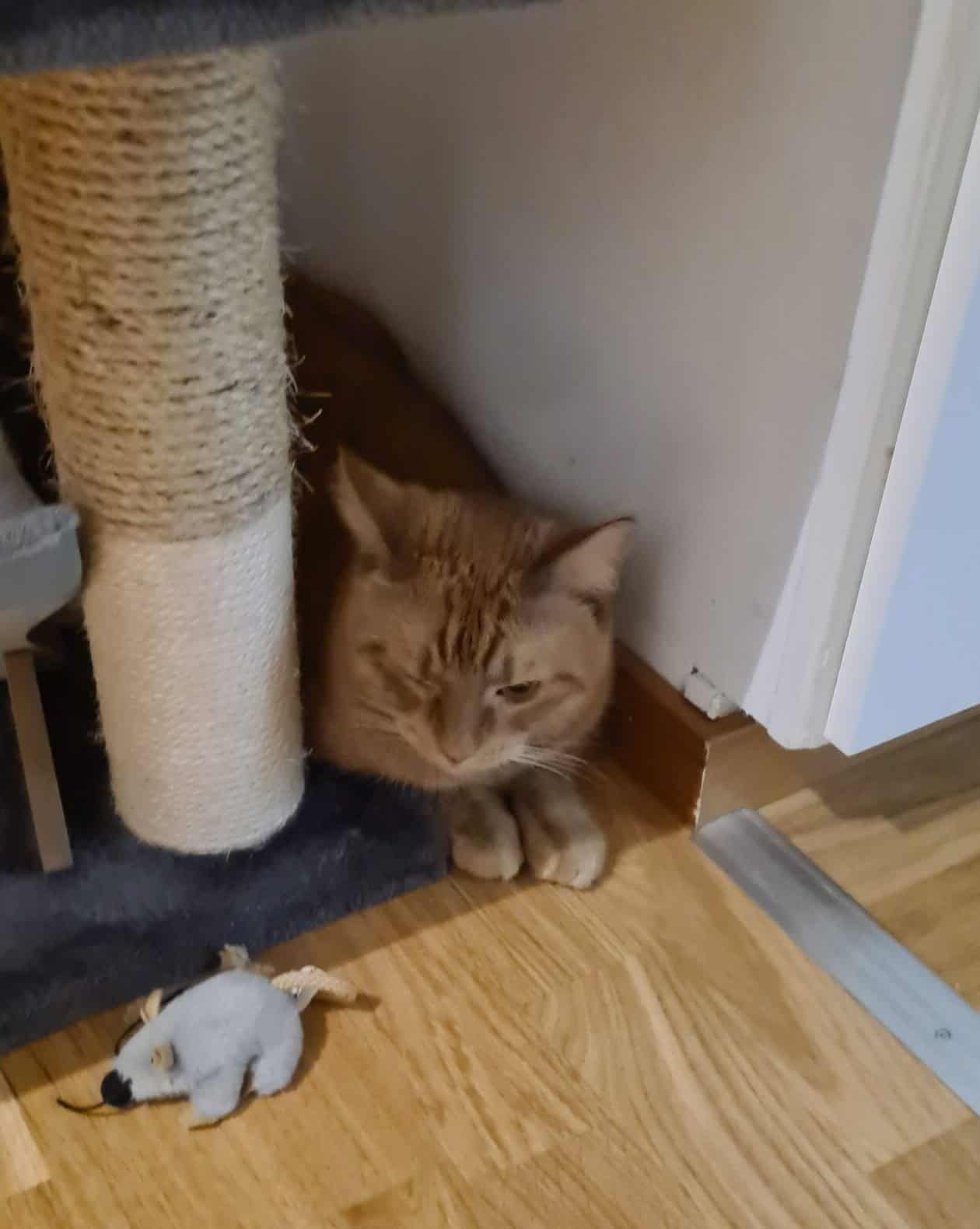 Nu har han kommit ut från sitt rum och la sig i soffan så det är ju ingen större skillnad.