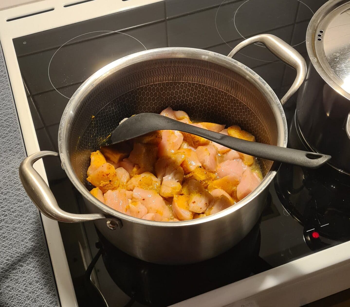 Jag fixar middagen, idag blir det kycklinggryta och ris.