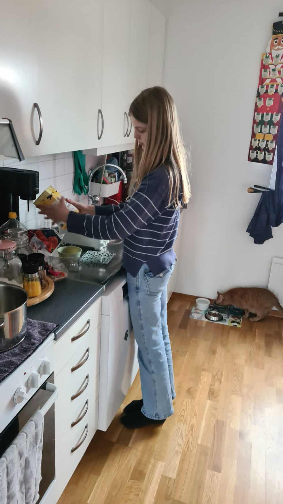 Albin fixar kvällsmat.