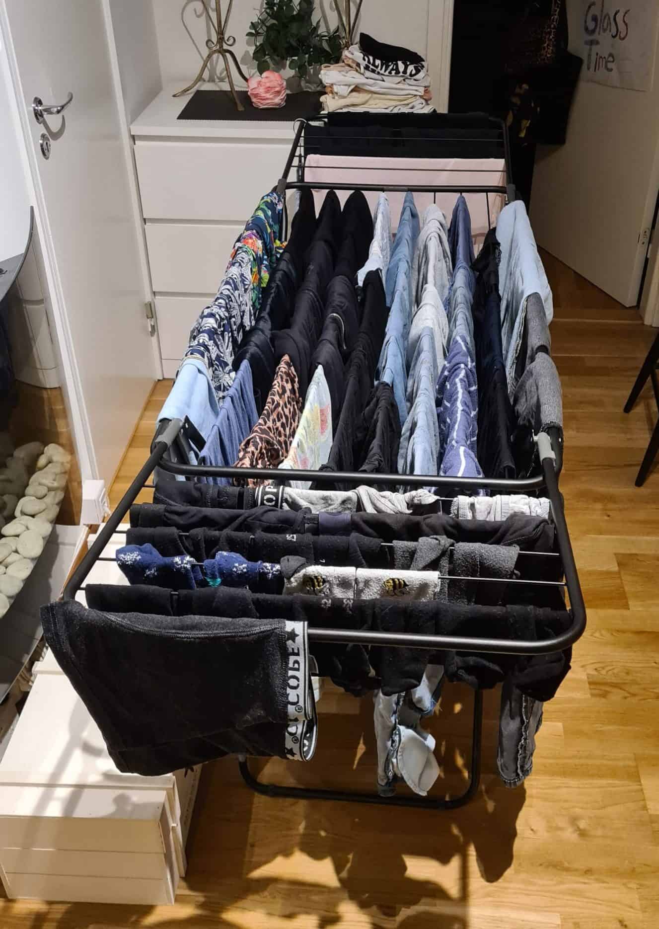 Hon hjälper till med tvätten.