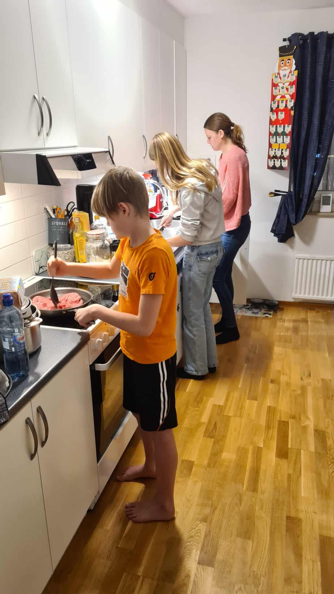 Matlagning, alla hjälper till.