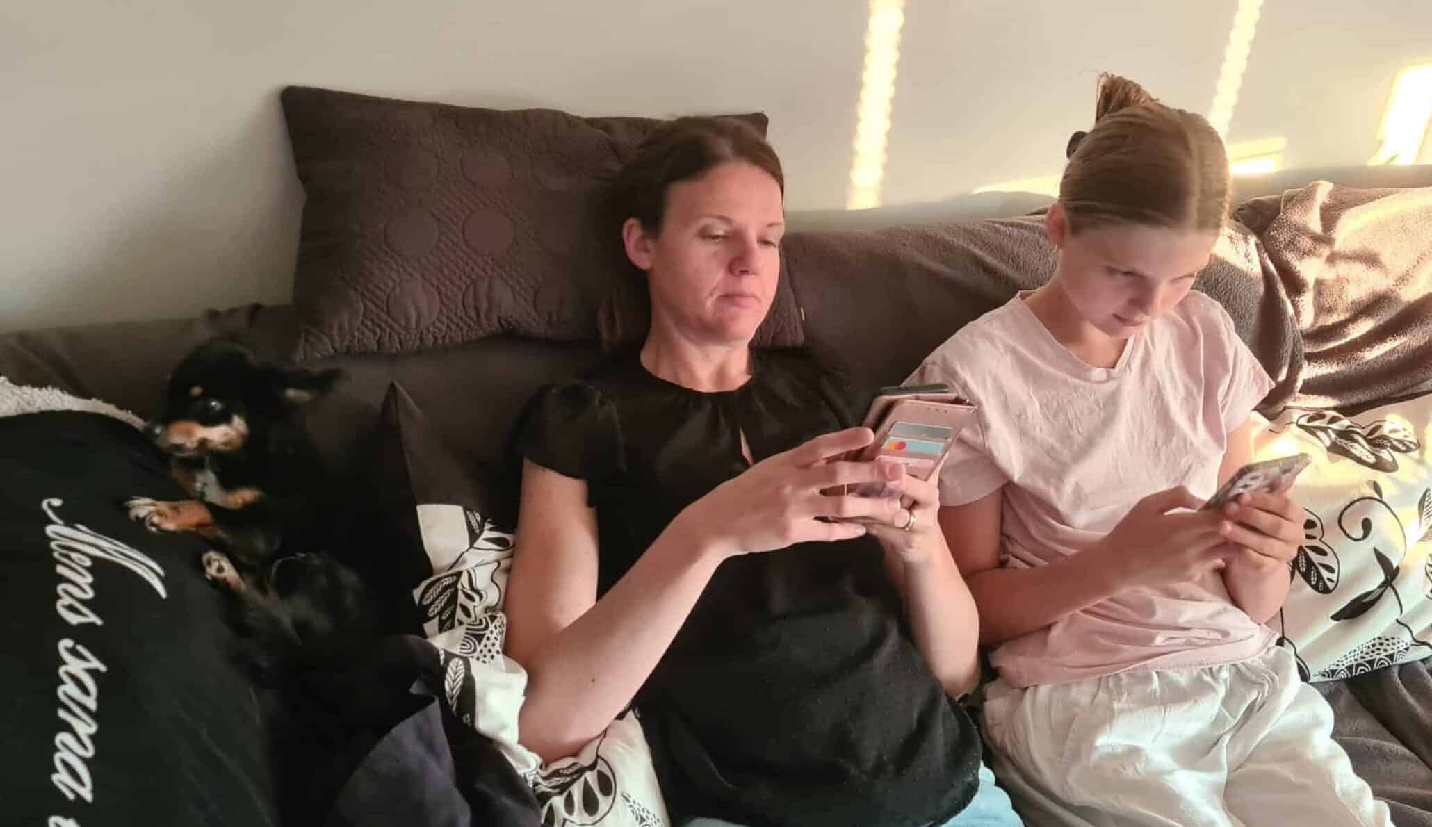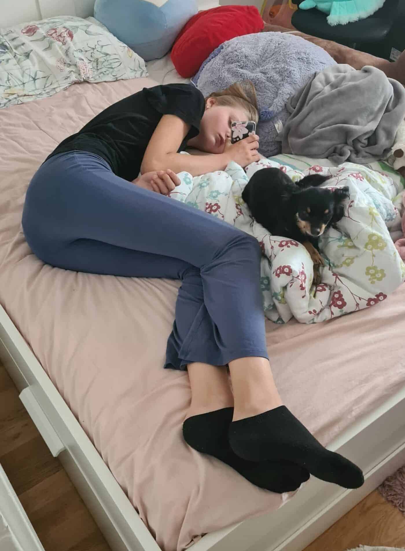Kajsa är med på soffmyset strax innan läggdags.