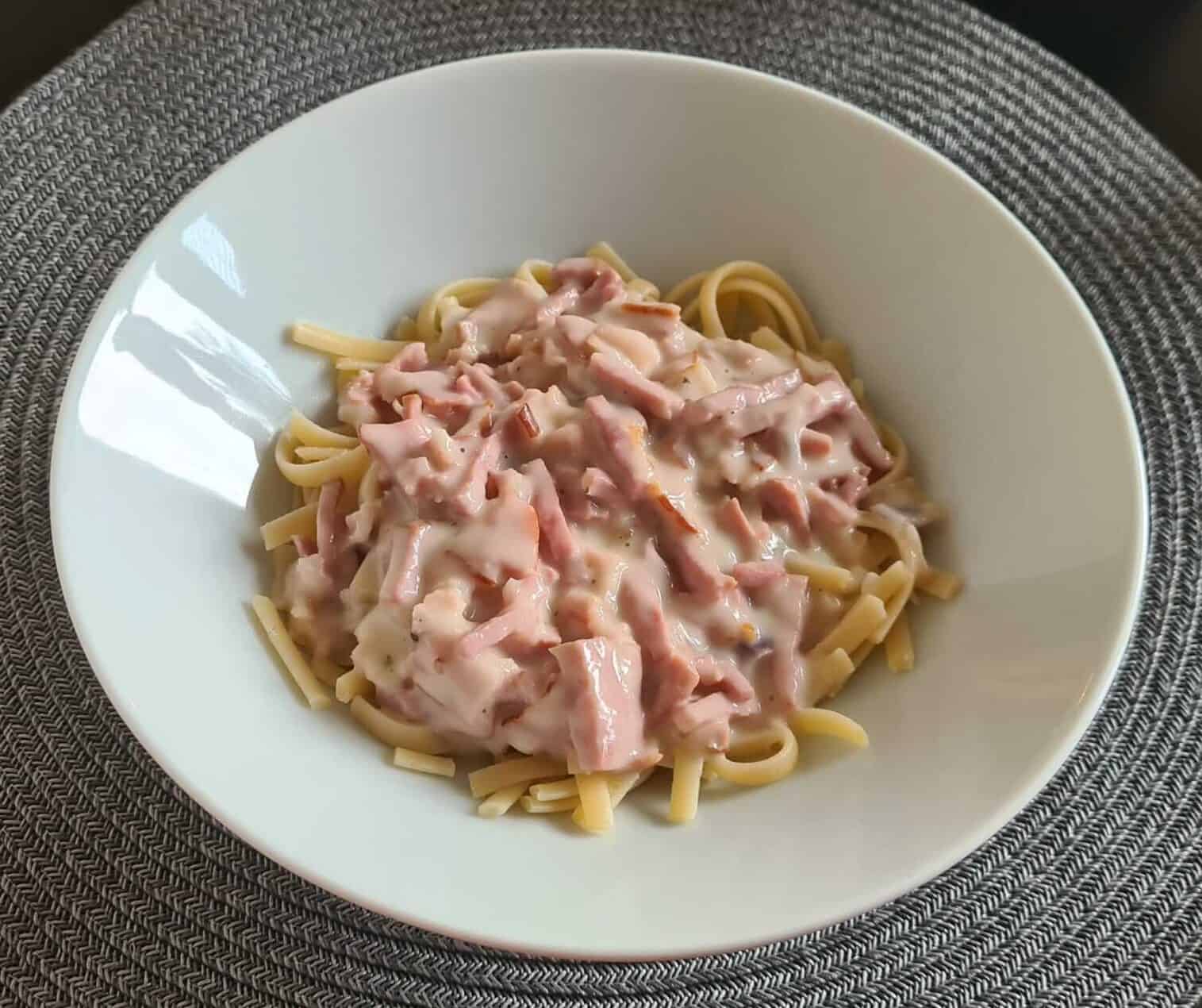 Idag blev det pasta med ost och skinksås.
