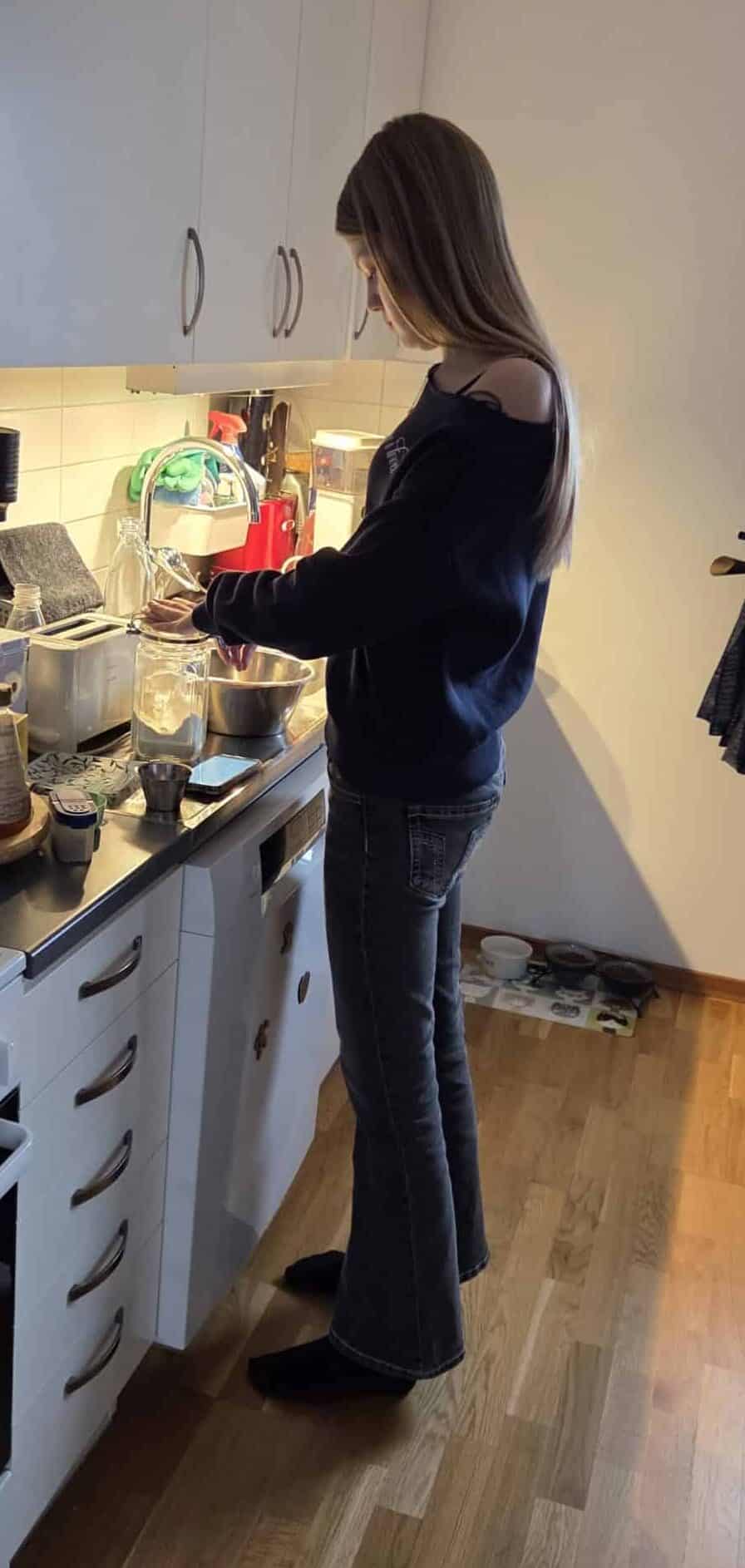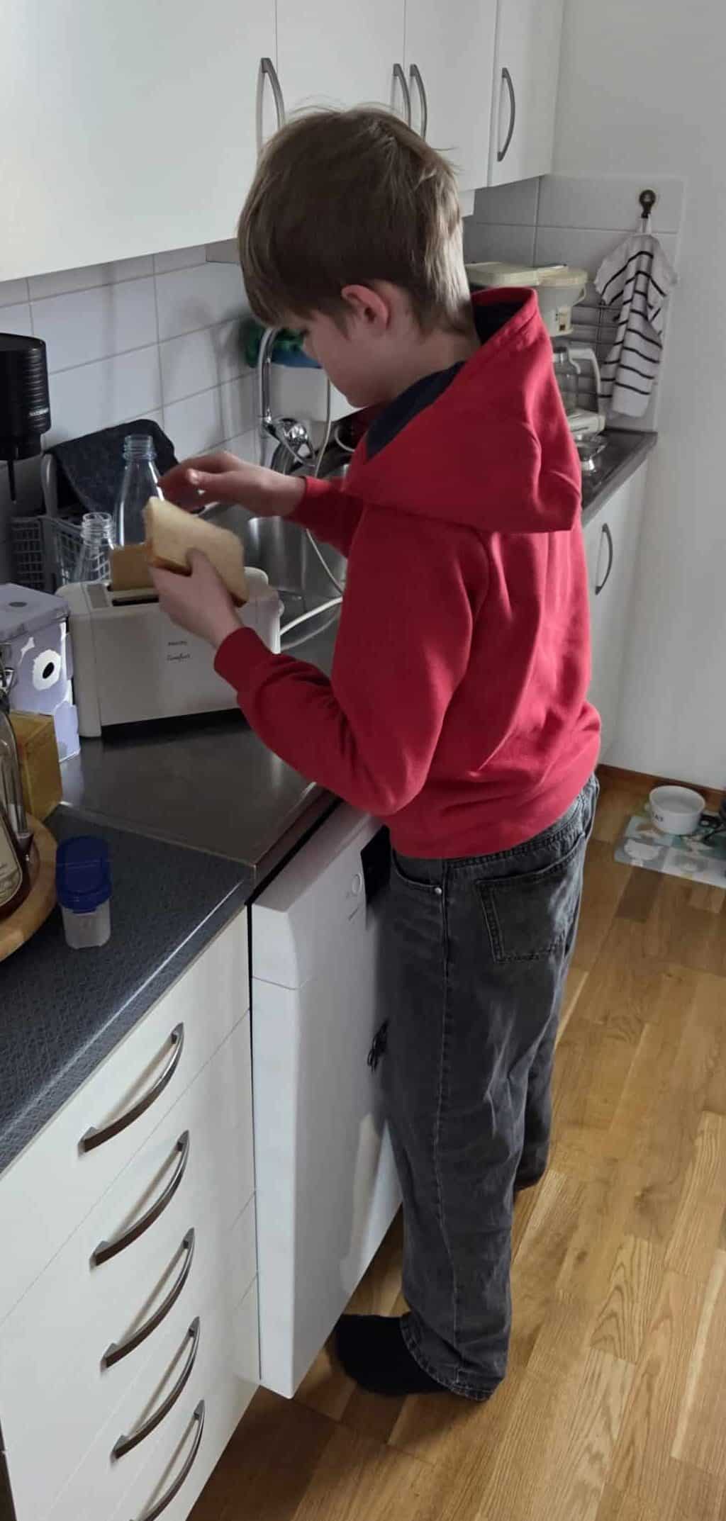 Han gör rostmackor med nutella till mellis.