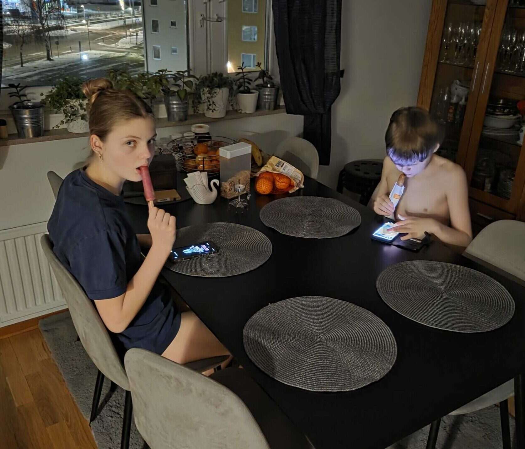 Glasspaus innan läggdags.