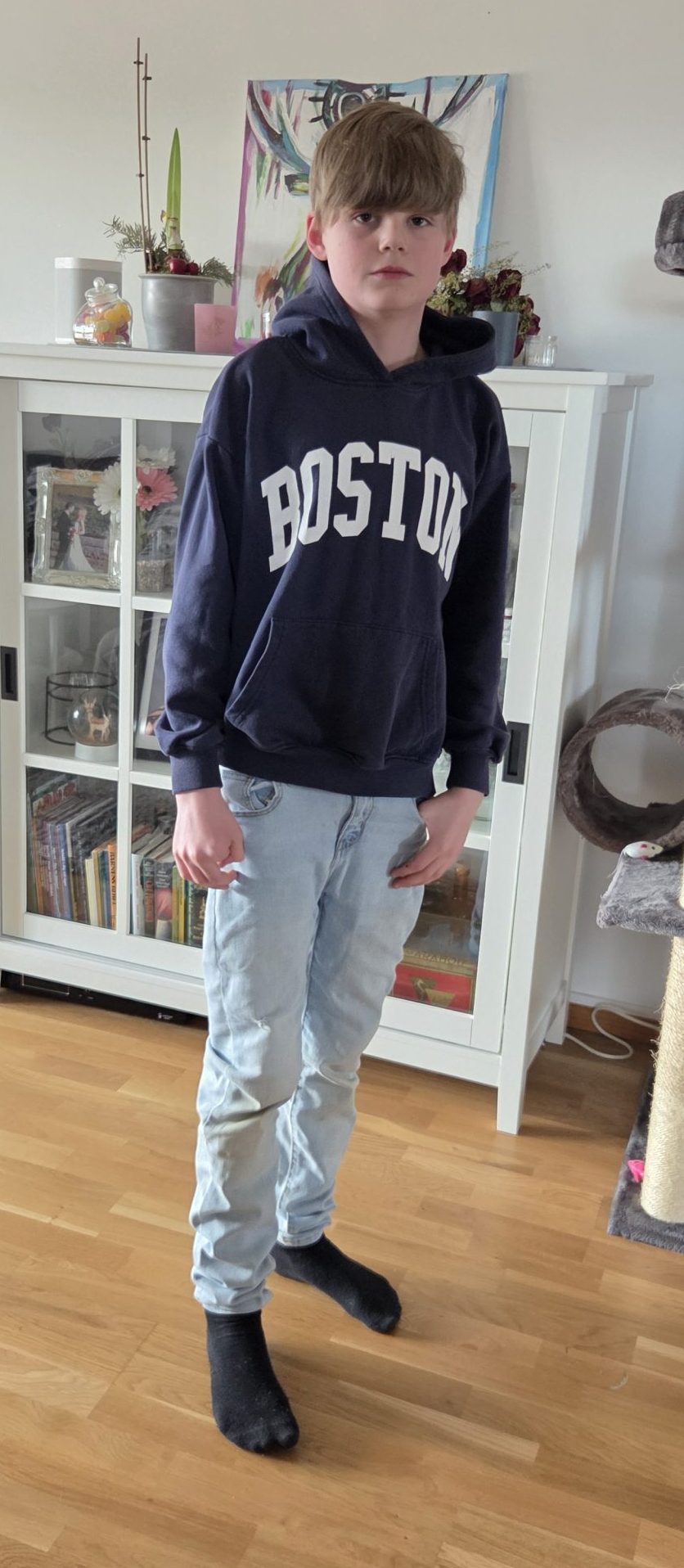 Ombytt till gymkläder men lite mellis först innan hon ska gå.