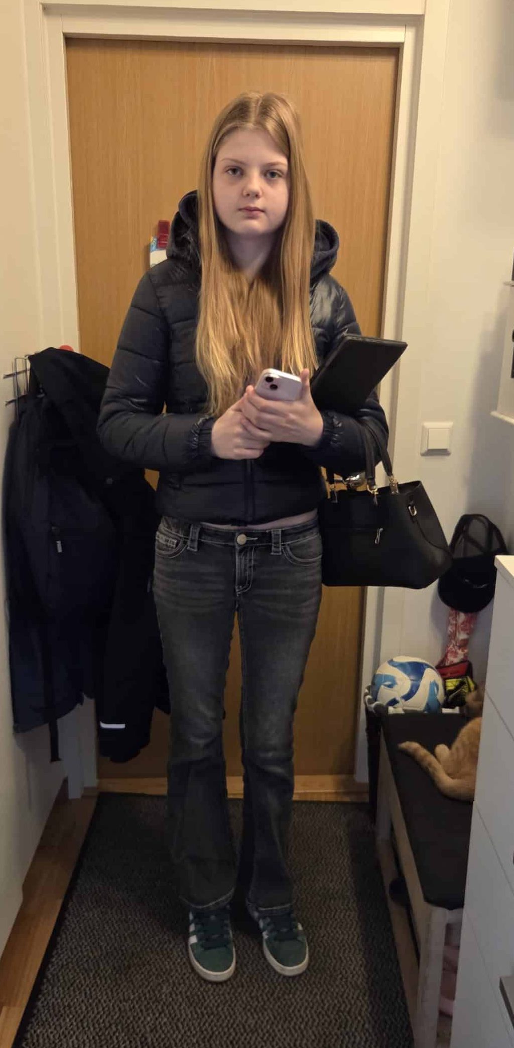 Lite senare kom Adina hem men hon gick ut lika fort igen.
